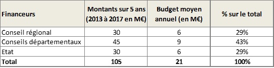 En additionnant les montants investis par ces deux régions sur la période 2013 à 2017, nous obtenons un montant de 44 M€ d’investissements publics sur 5 ans.