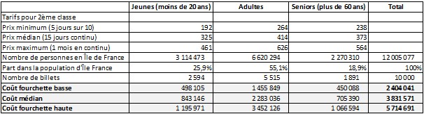 Le coût global pour la région dépendra également de sa capacité à négocier des tarifs au moins disant en raison de la taille du marché (10 000 Pass). En supposant que cela permettre de négocier (hypothèse la plus basse) une marge de 20% sur le tarif, cela pourrait ramener le coût global entre 1,92 et 4,57 M€.