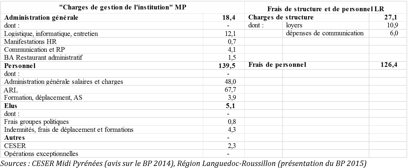 Celles-ci représentent 3,7 M€. Rapportée à la masse salariale des deux régions, elles représentent 1,4 % des salaires et charges des employés des deux Conseils régionaux, et pourraient être obtenues au moyen de non renouvellements de départs à la retraite, par exemple.