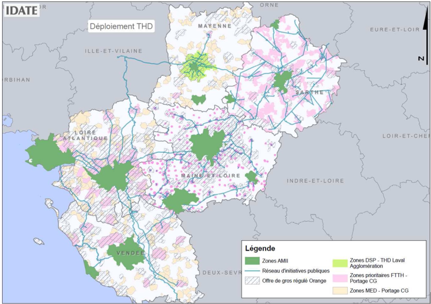 Carte des déploiements très haut débit d’initiative publique (zones prioritaires FttH)