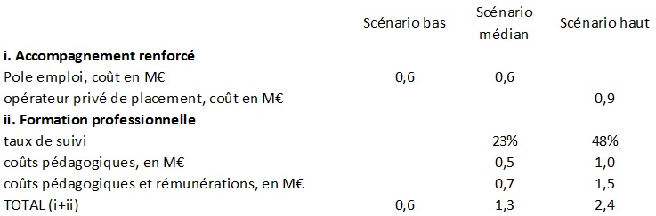 - médian : accompagnement renforcé par Pole emploi, 0,6 M€, formation pour près d'un quart des demandeurs d'emploi, 1,3 M€